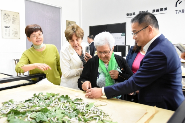 在中國(guó)首個(gè)蠶桑文化主題生態(tài)園——太湖雪蠶桑文化園,貝赫拉諾一行饒有興致地參觀了蠶桑文化展廳、育蠶課堂、創(chuàng)客工坊等場(chǎng)所,深入了解中國(guó)源遠(yuǎn)流長(zhǎng)的絲綢文化歷史,詳細(xì)聽(tīng)取震澤鎮(zhèn)大力保護(hù)傳承蠶桑文化,做大做強(qiáng)絲綢產(chǎn)業(yè),推進(jìn)農(nóng)文旅融合發(fā)展的情況介紹。期間,貝赫拉諾還與正在參加研學(xué)活動(dòng)的學(xué)生進(jìn)行互動(dòng)交流,對(duì)震澤鎮(zhèn)通過(guò)開(kāi)展蠶桑研學(xué),傳承絲綢文化,打造特色教育,增強(qiáng)文化自信的做法表示了高度贊賞。