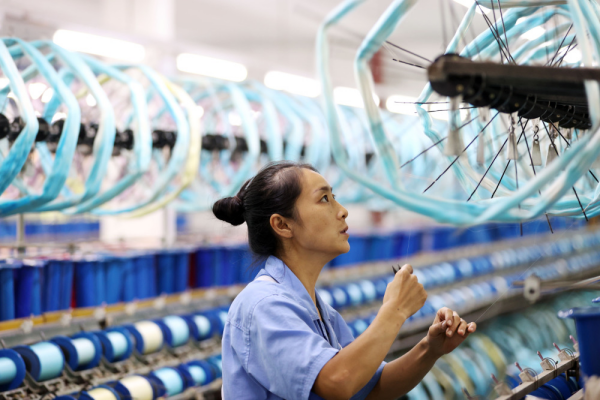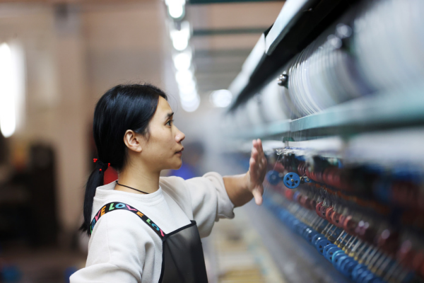 10月27日,黔江區(qū)正陽工業(yè)園區(qū)一絲綢公司,女工在生產(chǎn)車間勞作