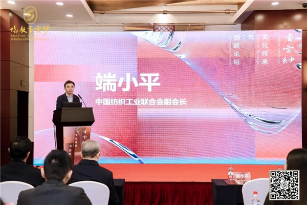 為貫徹黨的二十大精神,落實國辦關(guān)于恢復和擴大消費措施的通知要求,10月23日上午,由廣東省佛山市順德區(qū)倫教街道文化站、倫教香云紗協(xié)會主辦,華南農(nóng)業(yè)大學藝術(shù)學院、廣東省倫教蠶種場有限公司等單位協(xié)辦的香云紗文化傳承與創(chuàng)新論壇在北京舉行,中國紡織工業(yè)聯(lián)合會副會長端小平出席并致辭?;顒佑汕迦A大學美術(shù)學院教授吳波主持。