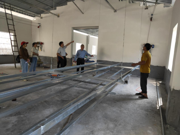 圖為科技特派團(tuán)羅平指出吊頂方格簇存在的安全隱患