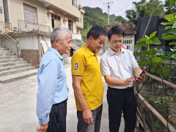 圖為科技特派團(tuán)羅平在安樂(lè)村委了解鄉(xiāng)村特色產(chǎn)業(yè)發(fā)展情況