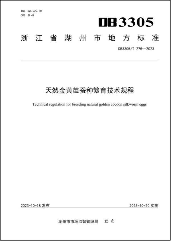 標準是推動社會進步、促進經(jīng)濟社會高質量發(fā)展的重要力量。近日,湖州市市場監(jiān)督管理局發(fā)布通告(湖市監(jiān)標準〔2023〕206號),正式批準由湖州市農(nóng)業(yè)農(nóng)村局提出、湖州市農(nóng)科院(農(nóng)業(yè)科技發(fā)展中心)起草的地方標準《天然金黃繭蠶種繁育技術規(guī)程》發(fā)布實施。