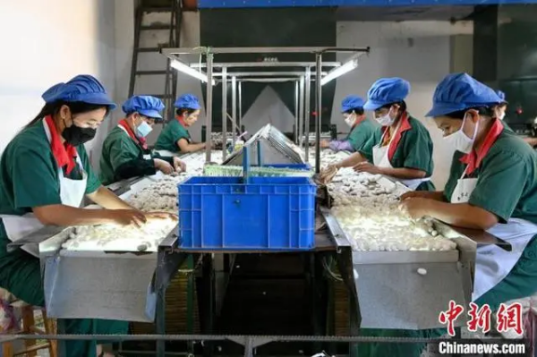 10月18日,中緬邊境德宏州隴川縣一家生絲企業(yè)內(nèi)的工人正在挑選蠶繭