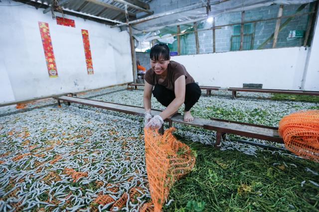覃艷春正在喂養(yǎng)蠶蟲