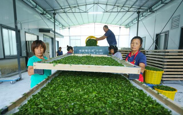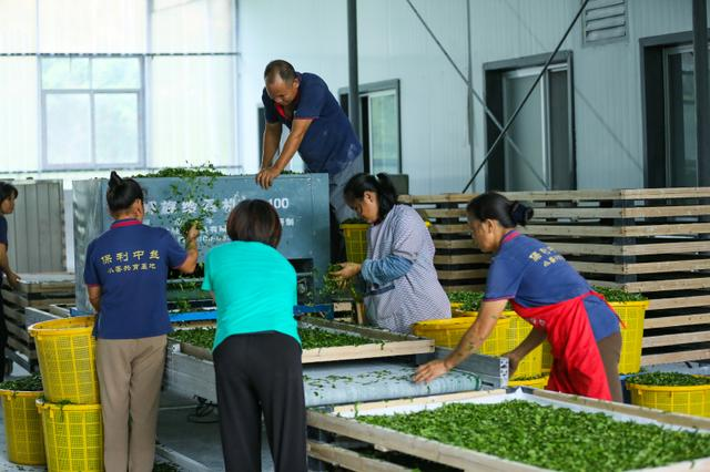 生產(chǎn)車間里,工人使用螺旋給桑機(jī)對桑葉進(jìn)行加工