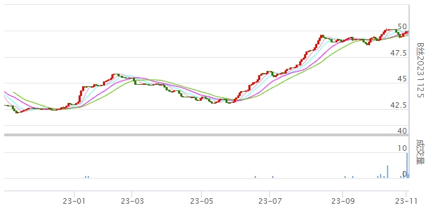 今日(2023年11月02日,周四)中國繭絲綢交易市場生絲指數(shù)微漲0.04%收于4953.84點。B絲(商檢4A級生絲):231125合約下跌0.06萬元報收于49.89萬元;240325合約上漲0.18萬元報收于50.34萬元;240925合約上漲0.06萬元報收于48.48萬元。