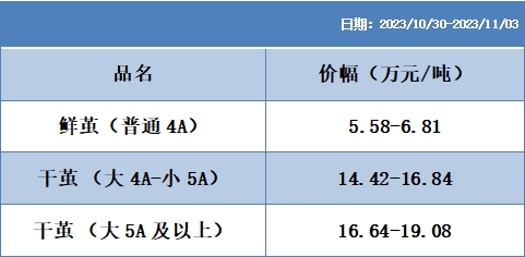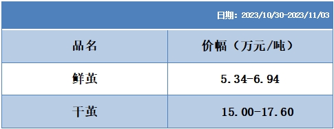 根據(jù)本周蠶繭報價按照指數(shù)方案形成的基準(zhǔn)品價格區(qū)間