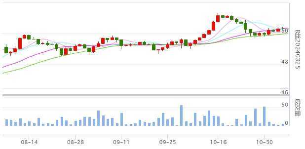 今日(2023年11月06日,周一)中國繭絲綢交易市場生絲指數(shù)微漲0.01%收于4955.01點。B絲(商檢4A級生絲):231125合約報平收于49.86萬元;240325合約報平收于50.34萬元;240925合約上漲0.03萬元報收于48.48萬元。