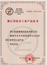 會(huì)上,浙江省優(yōu)秀工業(yè)產(chǎn)品評(píng)選委員會(huì)公布了“2023年浙江省優(yōu)秀工業(yè)產(chǎn)品”名單,此次凱喜雅集團(tuán)新開(kāi)發(fā)的“錦繡歲貢”系列面料、“錦繡歲貢”貢被、再生絲絹梭織面料等三項(xiàng)產(chǎn)品成功入選, 凱喜雅集團(tuán)出品再次成為了浙江省優(yōu)秀工業(yè)產(chǎn)品的精品名片。