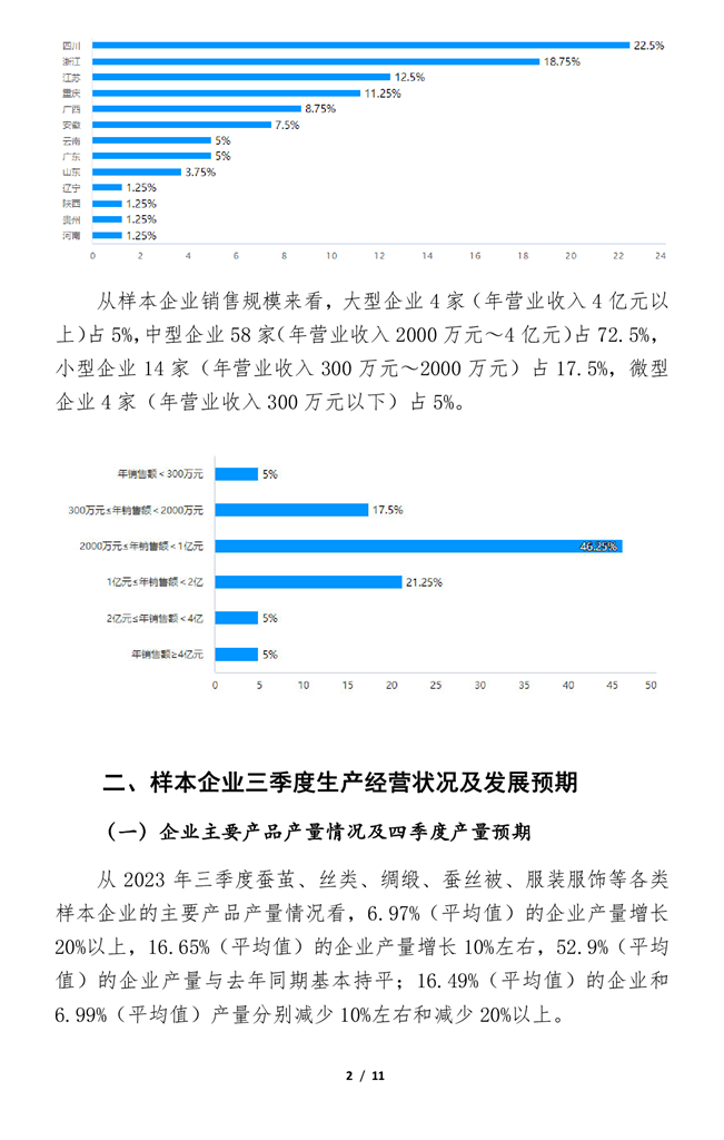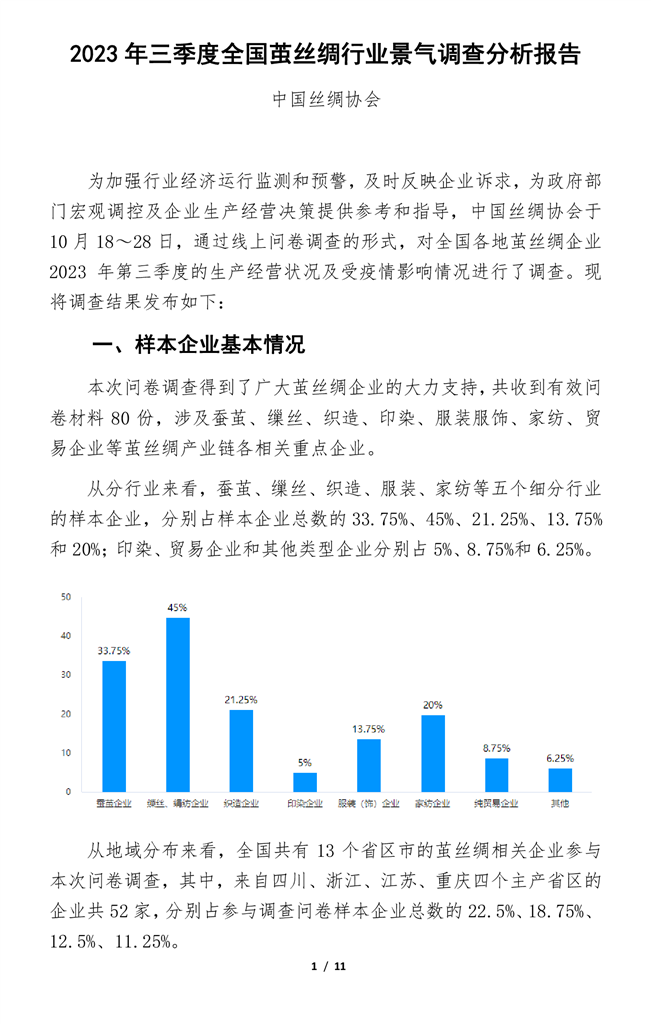 行業(yè)報告丨2023年三季度全國繭絲綢行業(yè)景氣調查分析報告