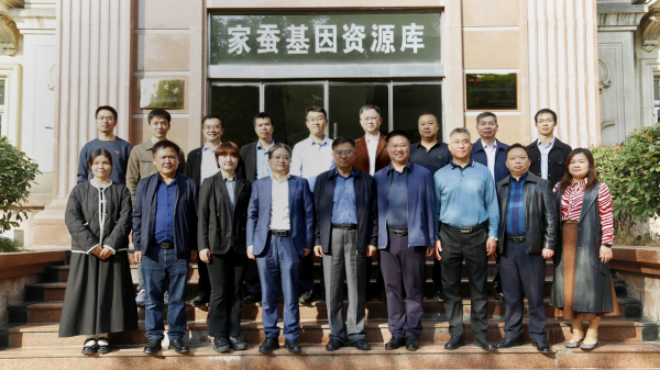 10月29日下午,全國畜牧總站黨委書記、國家畜禽遺傳資源委員會副主任兼辦公室主任時建忠,全國畜牧總站畜禽資源處韓旭,國家畜禽遺傳資源委員會蠶專業(yè)委員會專家組,在結(jié)束是日上午舉行的2023年蠶新品種初審會議之后,一同調(diào)研了國家蠶遺傳資源基因庫(重慶)的資源保護(hù)利用與建設(shè)情況。向仲懷院士在蠶學(xué)宮面會時建忠書記一行,并率領(lǐng)蠶學(xué)所全體在校教授與時建忠書記一行座談。