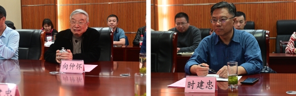 在隨后舉行的座談會上,向仲懷院士對農(nóng)業(yè)農(nóng)村部、國家畜牧總站對蠶桑學(xué)科給予的支持表示衷心感謝。向院士回顧了家蠶遺傳資源基因庫的始創(chuàng)和發(fā)展歷程,介紹了建庫思路和所形成的特點,指出本基因庫的國際地位和獨(dú)特作用。向院士概要性地回顧了新世紀(jì)以來實驗室在蠶??萍紕?chuàng)新方面的多個重大行動及成效,指出近期家蠶泛基因組成果、桑樹進(jìn)化新發(fā)現(xiàn)等對于現(xiàn)代蠶桑育種的意義,再次闡述了“立桑為業(yè)、多元發(fā)展”的產(chǎn)業(yè)發(fā)展思路。與會多位教授簡要補(bǔ)充介紹了近期研究內(nèi)容及進(jìn)展。