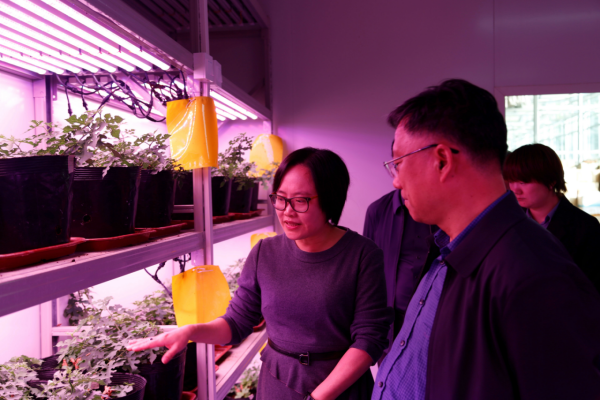 首先,時建忠書記一行在代方銀教授的陪同下實地考察了家蠶遺傳資源基因庫的飼養(yǎng)、制種、保種、蠶種檢疫及新種質(zhì)創(chuàng)制與遺傳評價分析等設(shè)施設(shè)備條件,仔細(xì)查看了今年繁殖的蠶種、歷年保種記錄等,同時在場工作人員向時書記一行介紹了蠶遺傳資源深度評價與利用情況,并展示了團(tuán)隊近期構(gòu)建完成的蠶遺傳資源泛基因組數(shù)據(jù)庫。