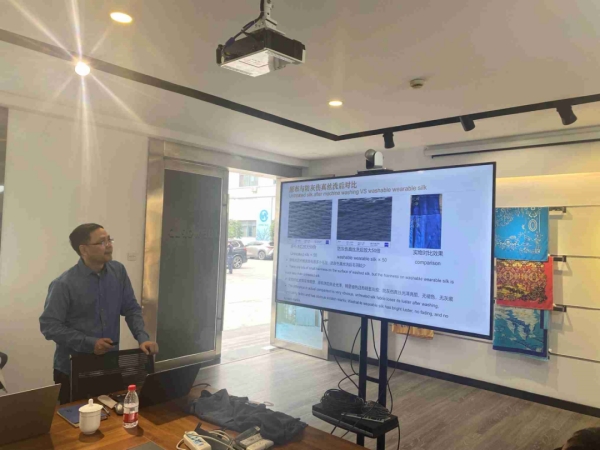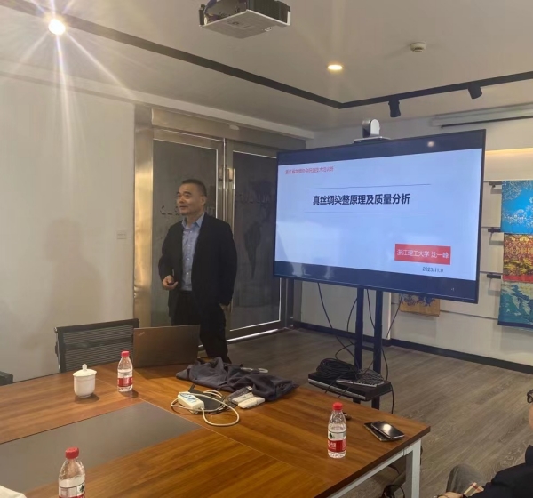 11月9日,由浙江省絲綢協(xié)會組織的絲綢織造技術(shù)培訓(xùn)班繼續(xù)開講,本次課程安排在凱喜雅集團旗下杭州華絲夏莎紡織科技有限公司內(nèi),由浙江理工大學(xué)教授沈一峰主講。