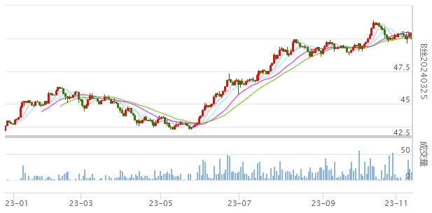 今日(2023年11月13日,周一)中國繭絲綢交易市場生絲指數(shù)下跌0.42%收于4927.66點(diǎn)。B絲(商檢4A級生絲):231125合約下跌0.15萬元報(bào)收于49.59萬元;240325合約下跌0.42萬元報(bào)收于49.98萬元;240925合約下跌0.24萬元報(bào)收于48.21萬元。