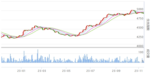 今日(2023年11月14日,周二)中國(guó)繭絲綢交易市場(chǎng)生絲指數(shù)微跌0.04%收于4925.75點(diǎn)。B絲(商檢4A級(jí)生絲):231125合約下跌0.03萬元報(bào)收于49.56萬元;240325合約上漲0.03萬元報(bào)收于50.01萬元;240925合約下跌0.06萬元報(bào)收于48.15萬元。