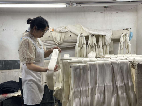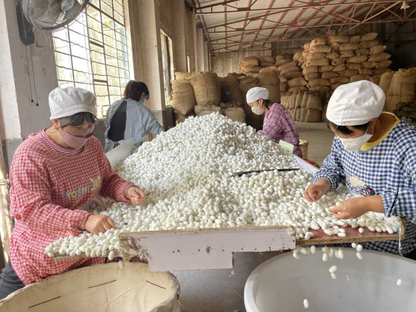 工人篩選蠶繭