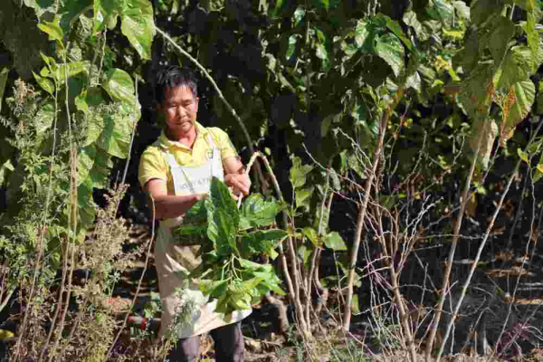 巧家縣白鶴灘街道舊營(yíng)村蠶農(nóng)采摘桑葉