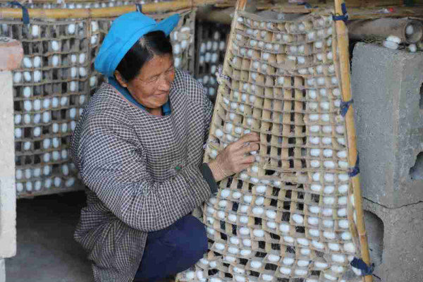 巧家縣白鶴灘街道舊營(yíng)村蠶農(nóng)摘取蠶繭