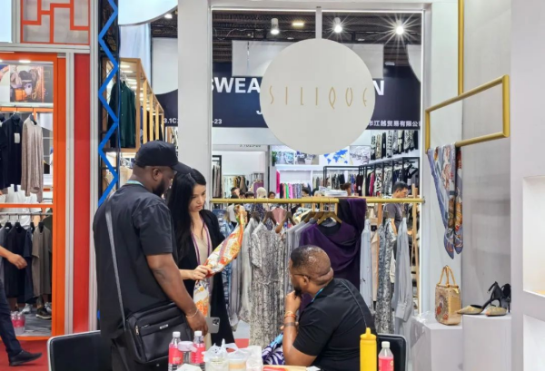 與廣交會(huì)外商洽談絲綢服裝和絲巾出口