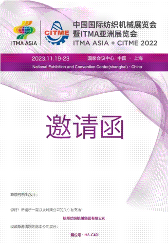作為全球最大的自動繅絲機(jī)生產(chǎn)經(jīng)營企業(yè),杭州紡織機(jī)械集團(tuán)有限公司也在本次展會中亮相,誠摯邀請行業(yè)同仁光臨公司展臺。