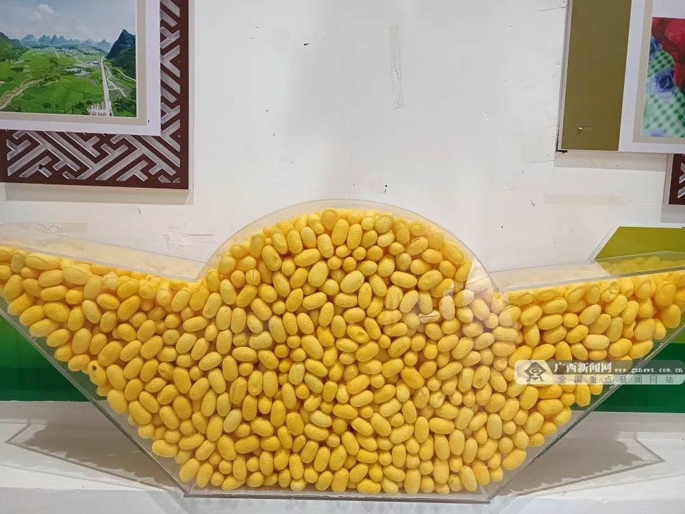 桑蠶文化產(chǎn)業(yè)園自主培育的新蠶種吐出黃色蠶絲