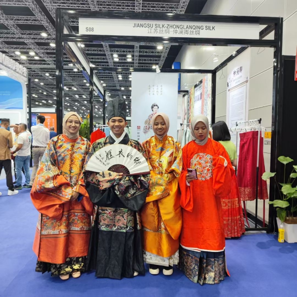 馬來西亞是最早響應(yīng)“一帶一路”倡議的國家之一,是江蘇在東盟最緊密的合作伙伴之一?!耙粠б宦贰钡某h是中國與世界共同發(fā)展的機(jī)遇,而絲綢之路則是連接?xùn)|西方文化交流的重要紐帶。江蘇省絲綢協(xié)會秉持著傳承和發(fā)揚(yáng)中國傳統(tǒng)文化的使命,通過品牌文化賦能,向世界傳遞絲綢之路精神。本次組團(tuán)赴境外參加展覽會由王正喜會長帶隊,江蘇絲綢展團(tuán)以新穎的產(chǎn)品形象結(jié)合深厚的文化功底,動靜相宜,突出品牌,充分展現(xiàn)了江蘇絲綢的獨(dú)特魅力,贏得各界領(lǐng)導(dǎo)、國際友人和客商的高度贊賞。此次境外參展一是展前準(zhǔn)備充分,參展企業(yè)精心準(zhǔn)備展品,協(xié)會秘書處多次組織協(xié)調(diào);二是集中整體布展,繡娘、天翱、蘇豪、華佳展位設(shè)在中心展區(qū)整體特裝,高端大氣,其他攤位連片呼應(yīng),引人注目;三是企業(yè)個性紛呈,傳統(tǒng)刺繡、蘇羅、旗袍、現(xiàn)代服飾、家居用品相得益彰,漢服體驗(yàn)生動活潑,互動頻頻。