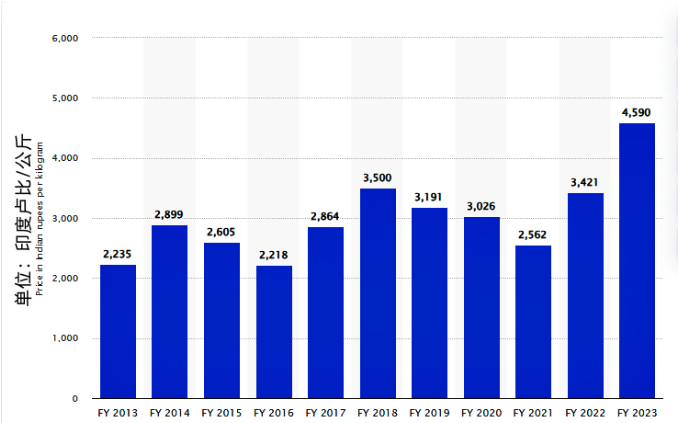 數(shù)據(jù) | 2013 - 2023財年印度桑蠶生絲價格