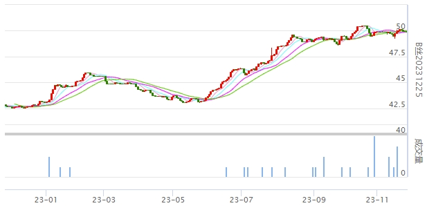 今日(2023年11月27日,周一)中國繭絲綢交易市場生絲指數(shù)微跌0.06%收于4972.91點。B絲(商檢4A級生絲):231225合約下跌0.06萬元報收于49.89萬元;240325合約下跌0.03萬元報收于50.67萬元;240925合約上漲0.03萬元報收于48.87萬元。今日A絲部分合約小幅上漲。