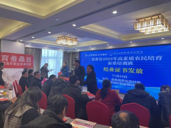 安徽省金寨縣2023年高素質(zhì)農(nóng)民培育蠶桑培訓(xùn)班于11月24日圓滿結(jié)業(yè)。此次培訓(xùn)內(nèi)容豐富、分階段分專業(yè)重實訓(xùn),既積極提升學(xué)員專業(yè)知識,又重視開拓學(xué)員眼界思路,讓學(xué)員切實感受到金寨縣政府對蠶桑行業(yè)的重視,增強了信心,為進一步推進金寨蠶桑產(chǎn)業(yè)高質(zhì)量發(fā)展打下基礎(chǔ)。