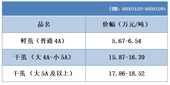 根據(jù)本周蠶繭報價按照指數(shù)方案形成的基準(zhǔn)品價格區(qū)間