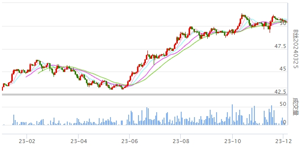 今日(2023年12月06日,周三)中國繭絲綢交易市場生絲指數(shù)微跌0.07%收于4965.04點。B絲(商檢4A級生絲):231225合約下跌0.06萬元報收于49.65萬元;240325合約上漲0.03萬元報收于50.49萬元;240925合約下跌0.03萬元報收于49.08萬元。