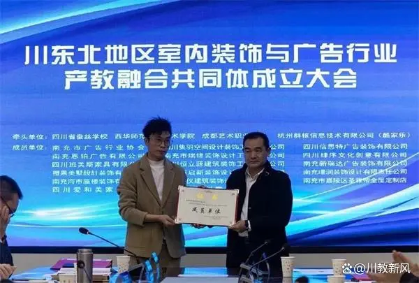 近日,由四川省蠶絲學校、西華師范大學美術學院、成都藝術職業(yè)大學建筑工程學院、杭州群核信息技術有限公司等單位牽頭成立的川東北地區(qū)室內裝飾與廣告行業(yè)產教融合共同體(以下簡稱“共同體”)成立大會在四川省蠶絲學校順利舉行。來自相關院校、行業(yè)協(xié)會、企業(yè)近40名嘉賓代表參加會議。