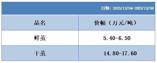 根據(jù)本周蠶繭報價按照指數(shù)方案形成的基準(zhǔn)品價格區(qū)間