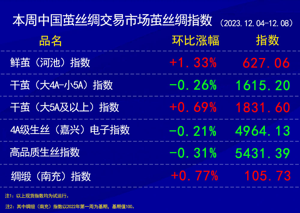 本周中國繭絲綢交易市場繭絲綢指數(shù)