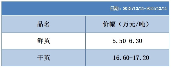 根據(jù)本周蠶繭報(bào)價(jià)按照指數(shù)方案形成的基準(zhǔn)品價(jià)格區(qū)間
