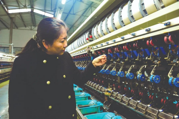 山西禹珈豪絲業(yè)股份有限公司董事長段麗在繅絲車間檢查生產(chǎn)情況。