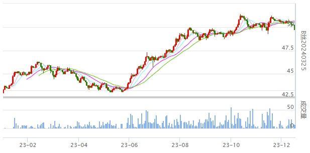 今日(2023年12月18日,周一)中國繭絲綢交易市場生絲指數(shù)下跌0.43%收于4906.63點(diǎn)。B絲(商檢4A級(jí)生絲):231225合約下跌0.09萬元報(bào)收于49.14萬元;240325合約下跌0.57萬元報(bào)收于49.71萬元;240925合約下跌0.24萬元報(bào)收于48.27萬元。