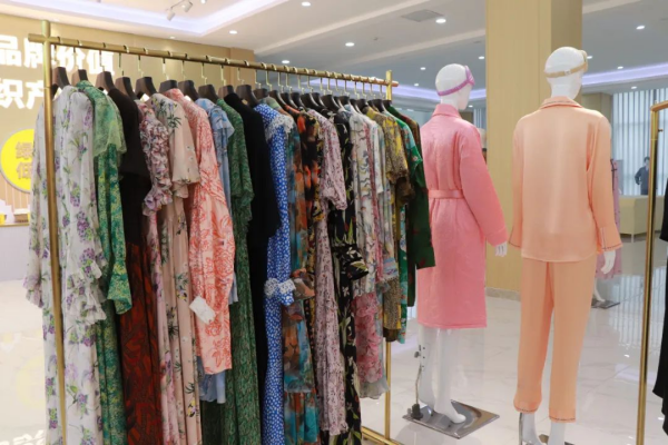 展廳內(nèi)陳列的絲綢成衣