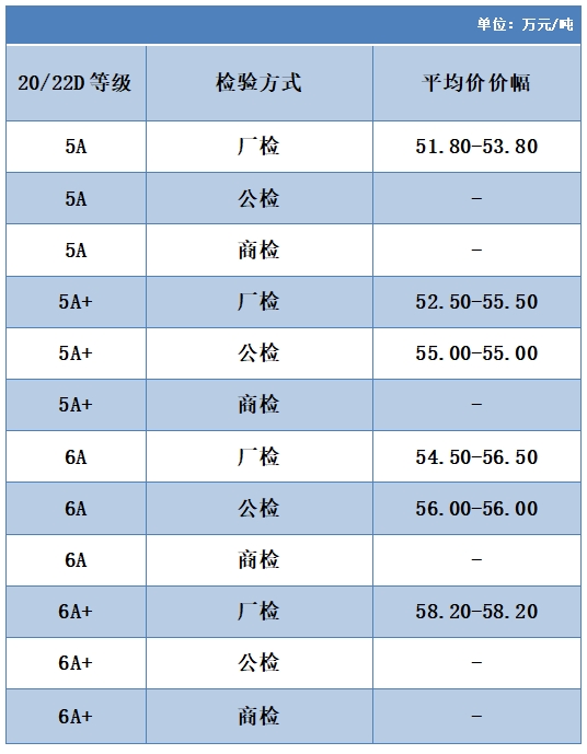 本周高品位生絲協(xié)作單位成交價(jià)格區(qū)間