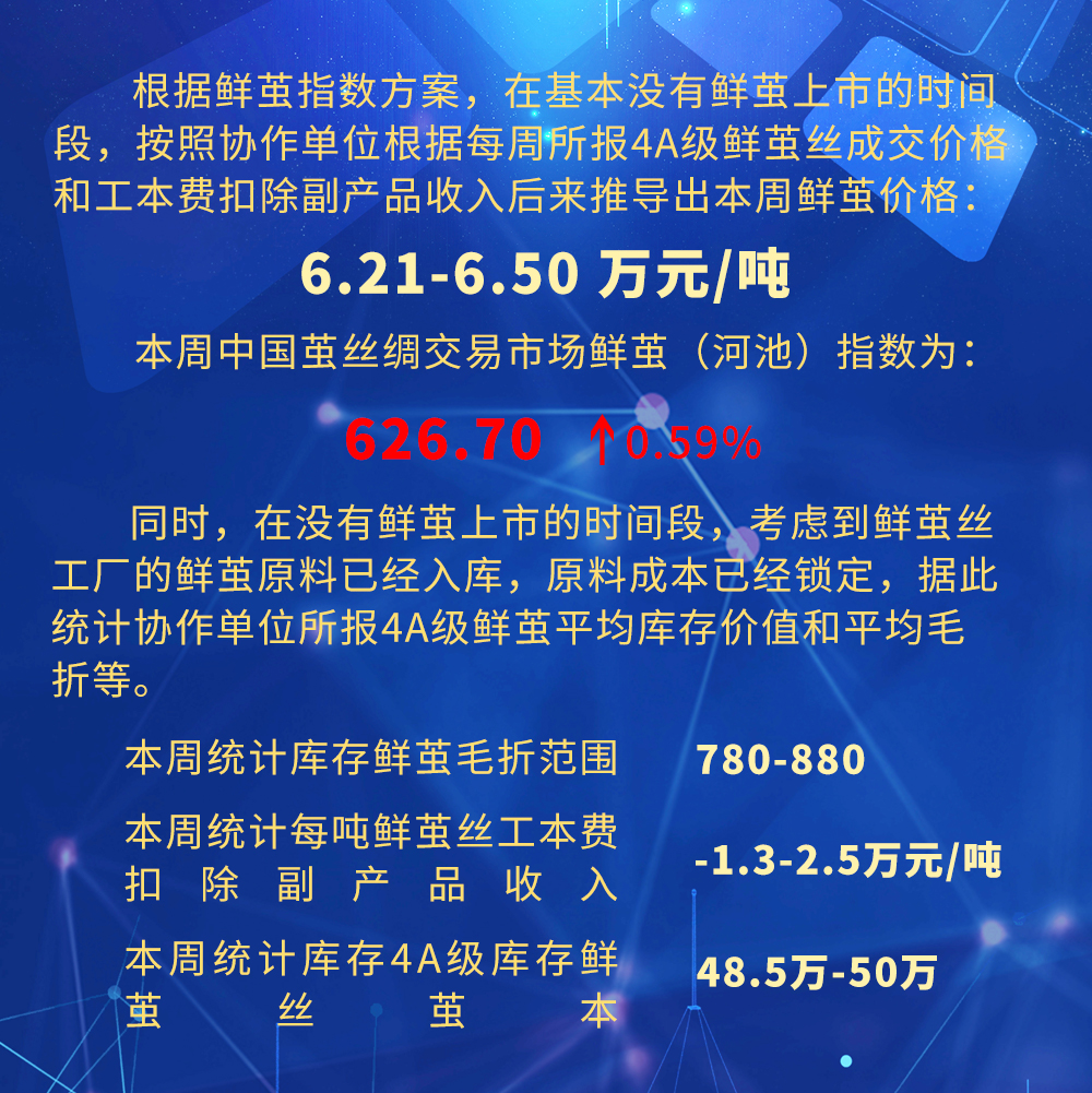 本周中國(guó)繭絲綢交易市場(chǎng)繭絲綢指數(shù)