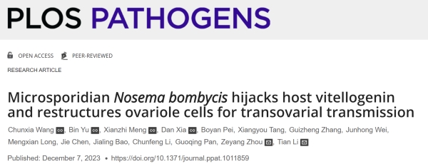 近日,資源昆蟲高效養(yǎng)殖與利用全國重點實驗室李田研究員課題組在微生物學(xué)Top期刊PLoS Pathogens在線發(fā)表了題為“Microsporidian Nosema bombycis hijacks host vitellogenin and restructures ovariole cells for transovarial transmission”的研究論文,揭示了家蠶微粒子蟲侵入家蠶卵母細(xì)胞的時間、路徑、形態(tài)、策略和關(guān)鍵分子機制。