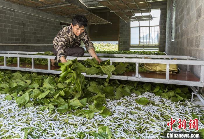 “養(yǎng)蠶病害少,產(chǎn)品不愁銷路,在合作社的技術(shù)支持下,我們家平均15天就養(yǎng)大一批蠶出售,每批次能賺1萬多元人民幣?!表f介軍說。