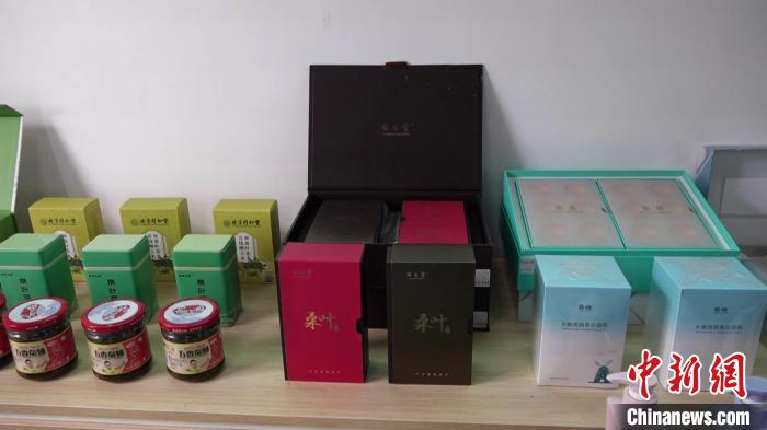 圖為桑葉茶、蠶絲護(hù)膚品等產(chǎn)品展示