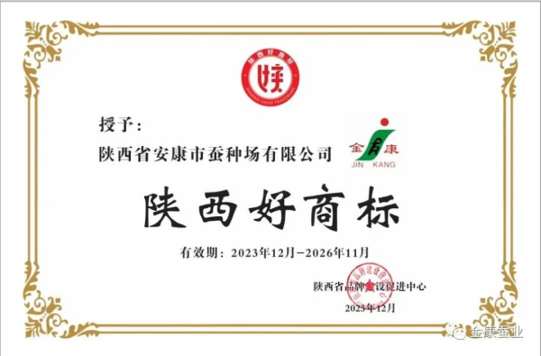 大會宣布了2023年“陜西好商標”評價結(jié)果,安康市蠶種場有限公司“金康”商標榮獲2023年“陜西好商標”。
