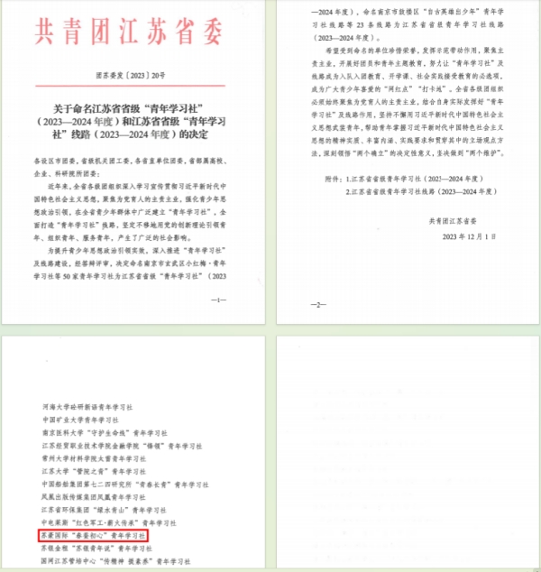 蘇豪股份“春蠶初心”青年學(xué)習(xí)社成功獲評(píng)江蘇省級(jí)稱(chēng)號(hào)
