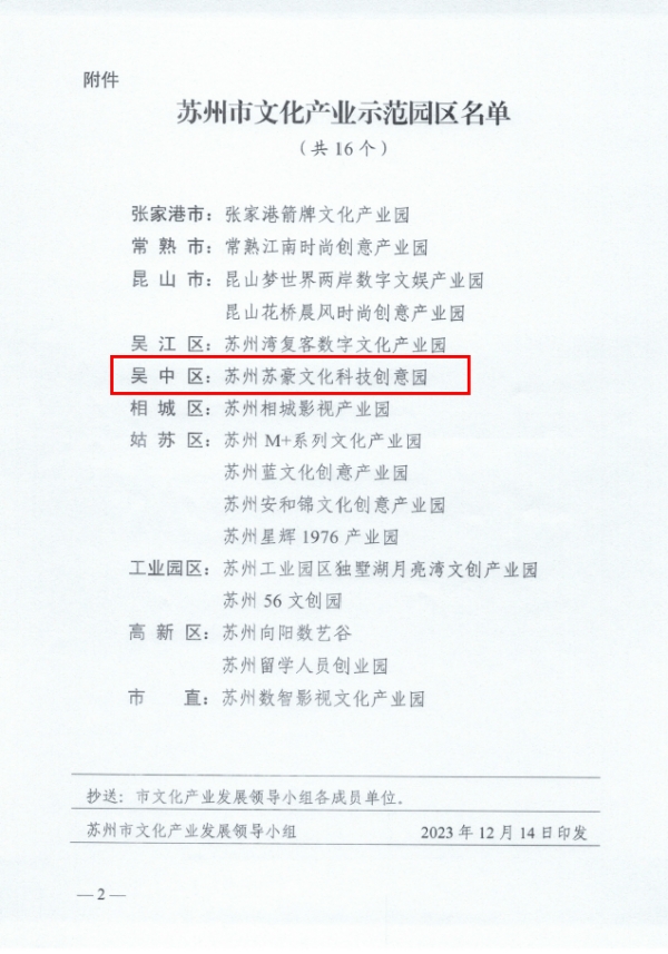 蘇州蘇豪文創(chuàng)園入選“蘇州市文化產(chǎn)業(yè)示范園區(qū)”