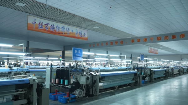 粵桂協(xié)作廣西忻城繭絲綢產(chǎn)業(yè)園——織綢車間
