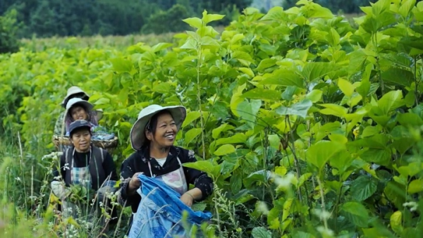 納雍縣勺窩鎮(zhèn)村民正在采摘桑葉