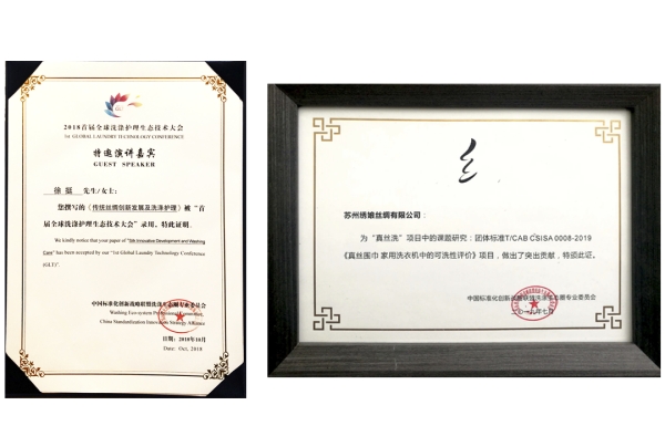 繡娘絲綢立足于讓絲綢更年輕、更科技、更國際的需求,基于絲綢消費(fèi)的難洗、易皺等痛點(diǎn),先后研發(fā)了可機(jī)洗絲綢、抗皺絲綢等產(chǎn)品,引領(lǐng)國內(nèi)“真絲洗”課題研發(fā)推進(jìn),為行業(yè)的進(jìn)步和發(fā)展做出積極的貢獻(xiàn)。